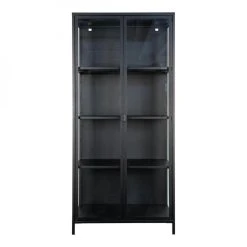 Vitrine 2 Portes Verre et Acier Noir H175cm de la gamme Hendra.