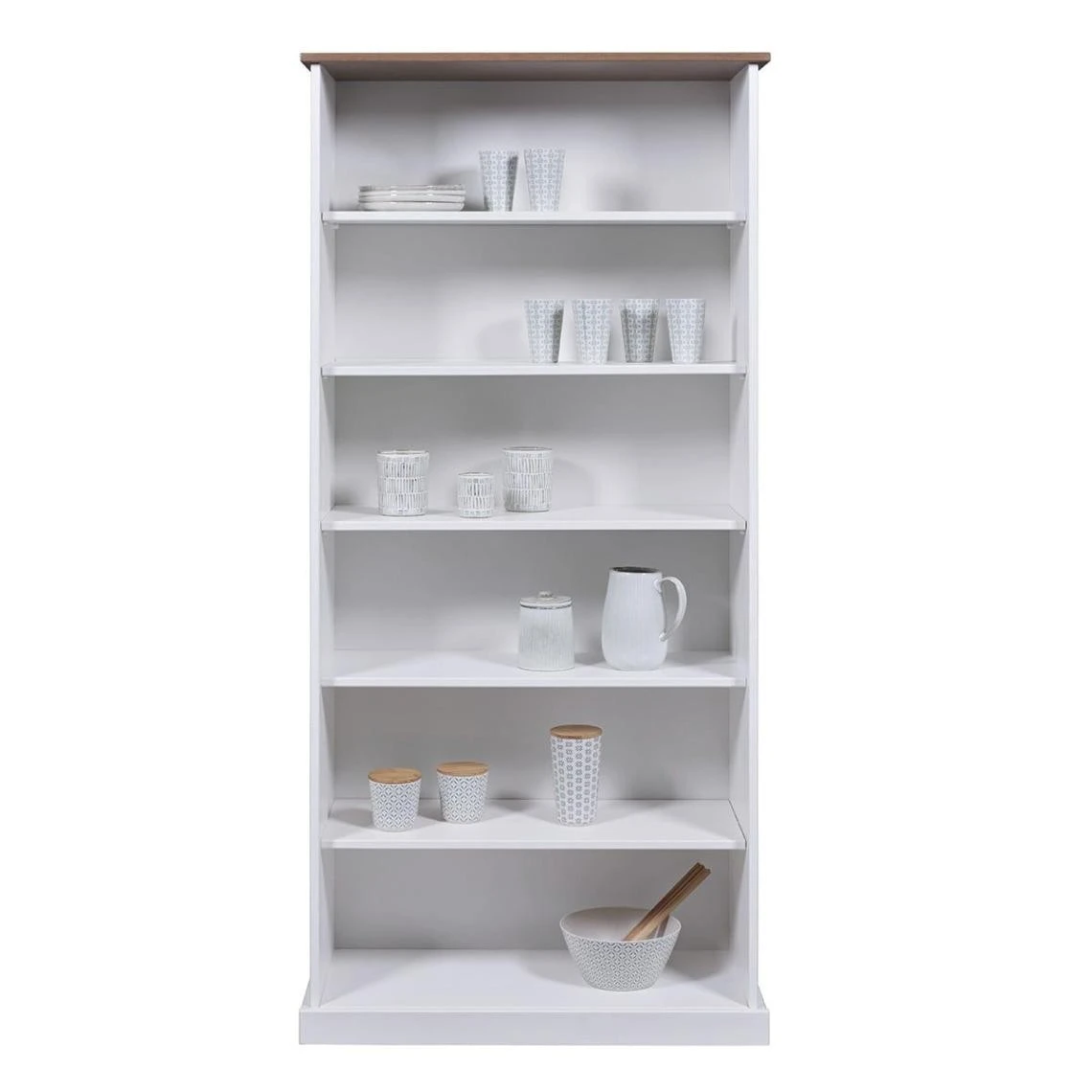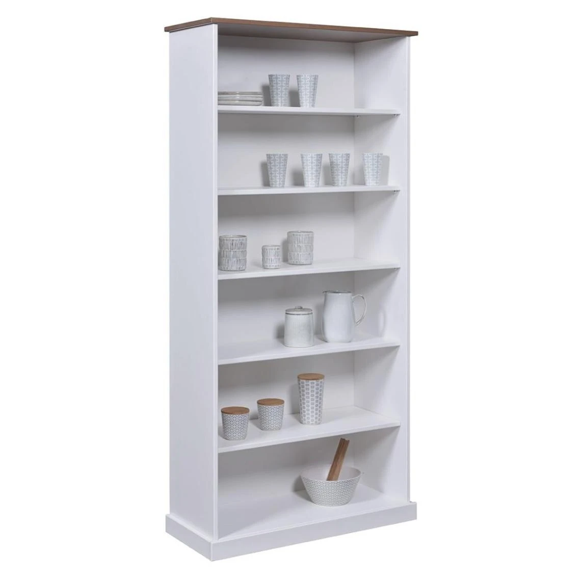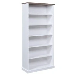 Points forts Altobuy SOCOA – Bibliothèque 6 Niches Bois Massif Vernis Sepia et Blanc