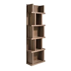 Bibliothèque de design moderne avec étagères irrégulières en bois plaqué noyer naturel de 0,5 mm d’épaisseur. Une bibliothèque au design très original qui est parfaite pour apporter la touche de chaleur et de style que vous recherchez dans votre intérieur, tout en gardant tout en ordre.