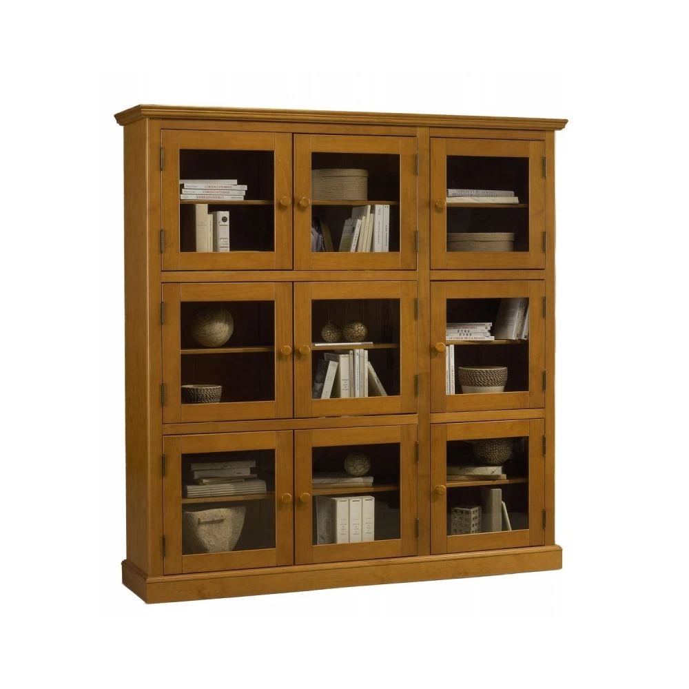 Points forts Beaux Meubles Pas Chers Bibliothèque 9 Portes Vitrées Pin Miel