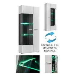 Dusine VITRINE REVERSIBLE WARNER BLANC LAQUE ET BOIS NOIR AVEC LED 80 X 190 C…