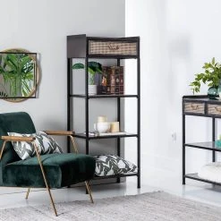 Altobuy BRANKA – Etagère 4 Plateaux 1 Tiroir Métal Noir Et Or Vieilli