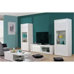 Altobuy DAYTON WHITE – Vitrine 1 Porte Réversible Laquée Blanche Et Leds