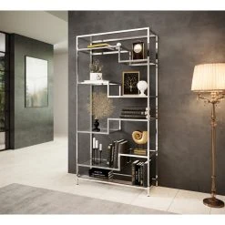 Vivenla Bibliothèque Design En Acier Et Verre Coloris Argenté L. 108 X P. 3…