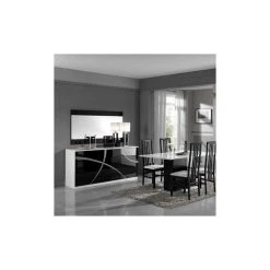 Dusine BUFFET BAHUT SPIRIT LED 140 Cm Caisson Noir MAT Avec 4 Tiroirs Noir LA…