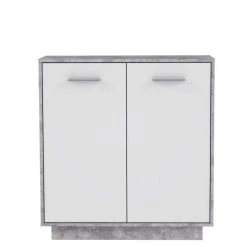 CSTORE PILVI Meuble De Rangement 2 Portes – Blanc Et Béton Gris Clair – L 82…