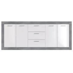 CSTORE STONE Buffet 4 Portes 3 Tiroirs – Décor Béton Et Blanc – L 206 X P …