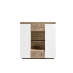 Inside 75 Buffet Haut HERNING 114 Cm Laqué Blanc Mat Décor Chêne Noueux 2 Por…