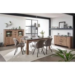 KASALINEA Vaisselier Contemporain 130 Cm Couleur Chêne Gris ANGUS