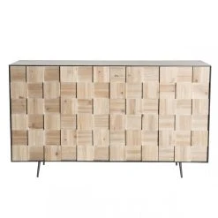 MACABANE Buffet Bas Marron 3 Niches 2 Portes Effet Cannage Pieds Métal CHARLI…