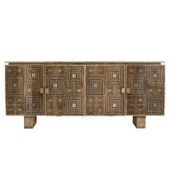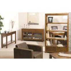 MACABANE Buffet Bois Manguier 177x45cm 4 Portes 2 étagères Goa