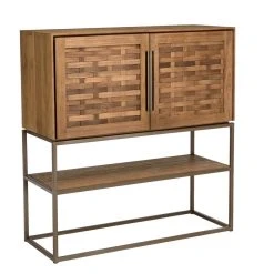 MACABANE Buffet Bois Manguier 81x45cm 2 Portes 2 étagères Pondichery
