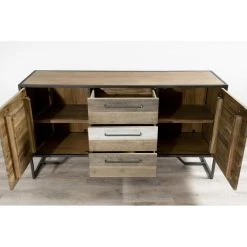 MACABANE Buffet MADISON 2 Portes 3 Tiroirs Bois Teck Recyclé Façade Métal Et…