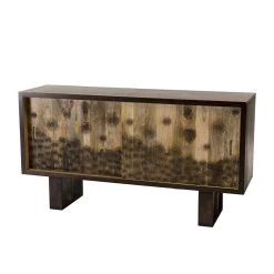 MACABANE Buffet Marron 2 Portes Bois De Manguier Cannage Pieds Métal Doré ISA