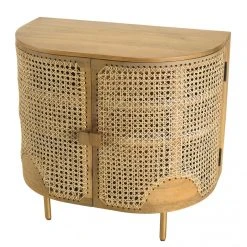 MACABANE Buffet Marron 2 Portes Bois Manguier Et Cannage Pied Métal Doré ISA