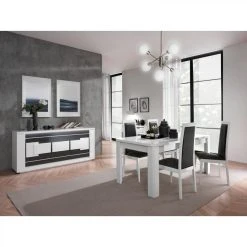 Modern Living Buffet 4 Portes BELLARIVA Laqué Blanc/ Gris Anthracite