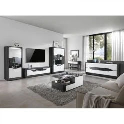 Modern Living Buffet 3 Portes BELLARIVA Laqué Blanc/ Gris Anthracite.