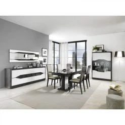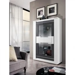 Modern Living Vitrine 2 Portes BELLARIVA Laqué Blanc/ Gris Anthracite