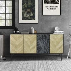 CSTORE Buffet – Effet Bois Vintage Et Blanc Laqué – Style Contemporain – 4 P…