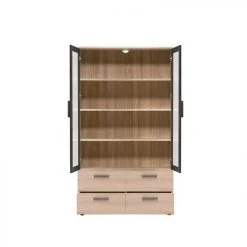 BUT Vitrine 2 Portes/ 4 Tiroirs TOLEDO Décor Chêne Sonoma/blanc