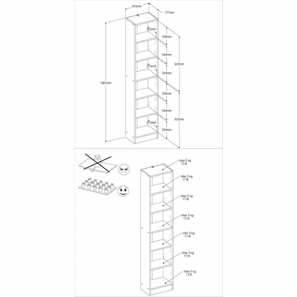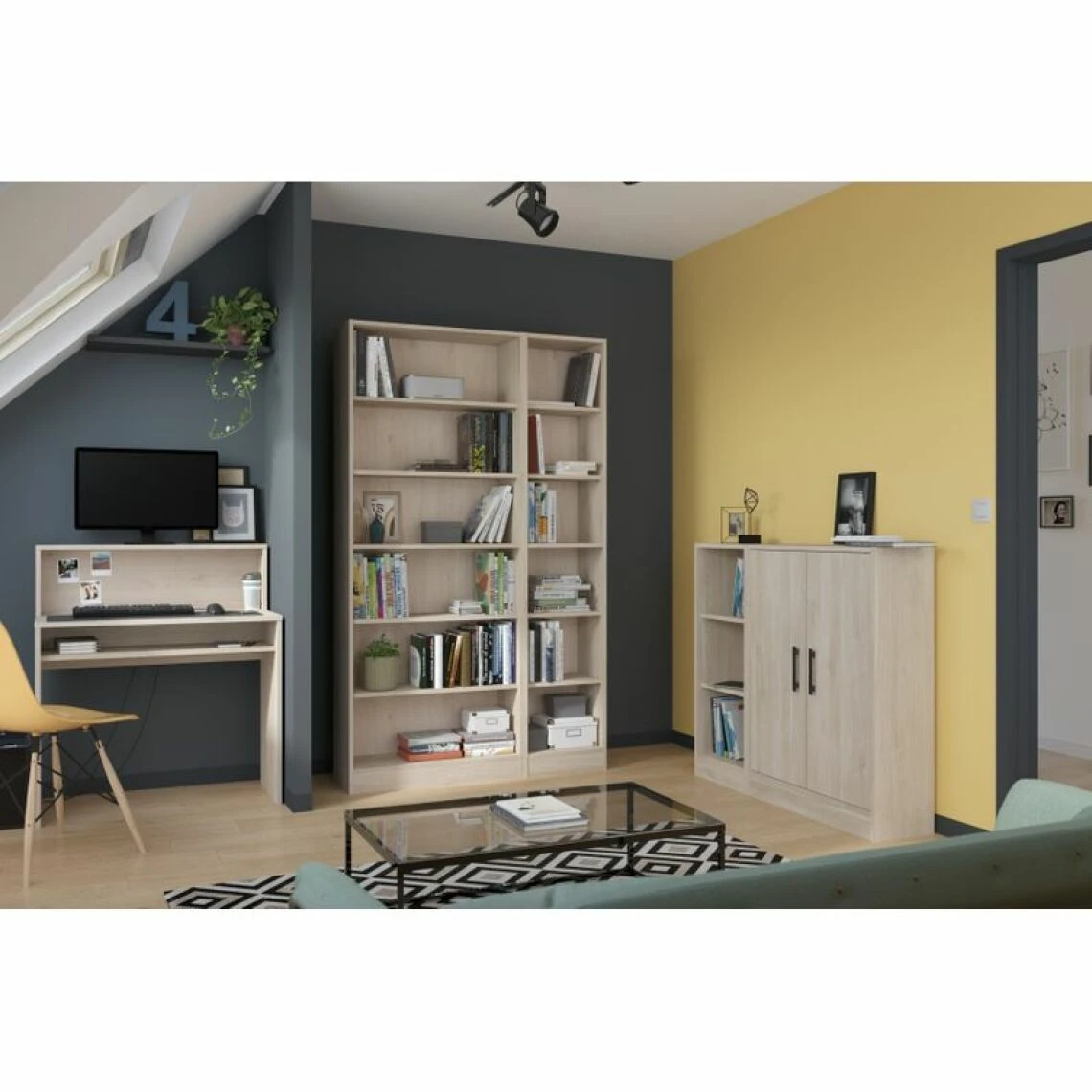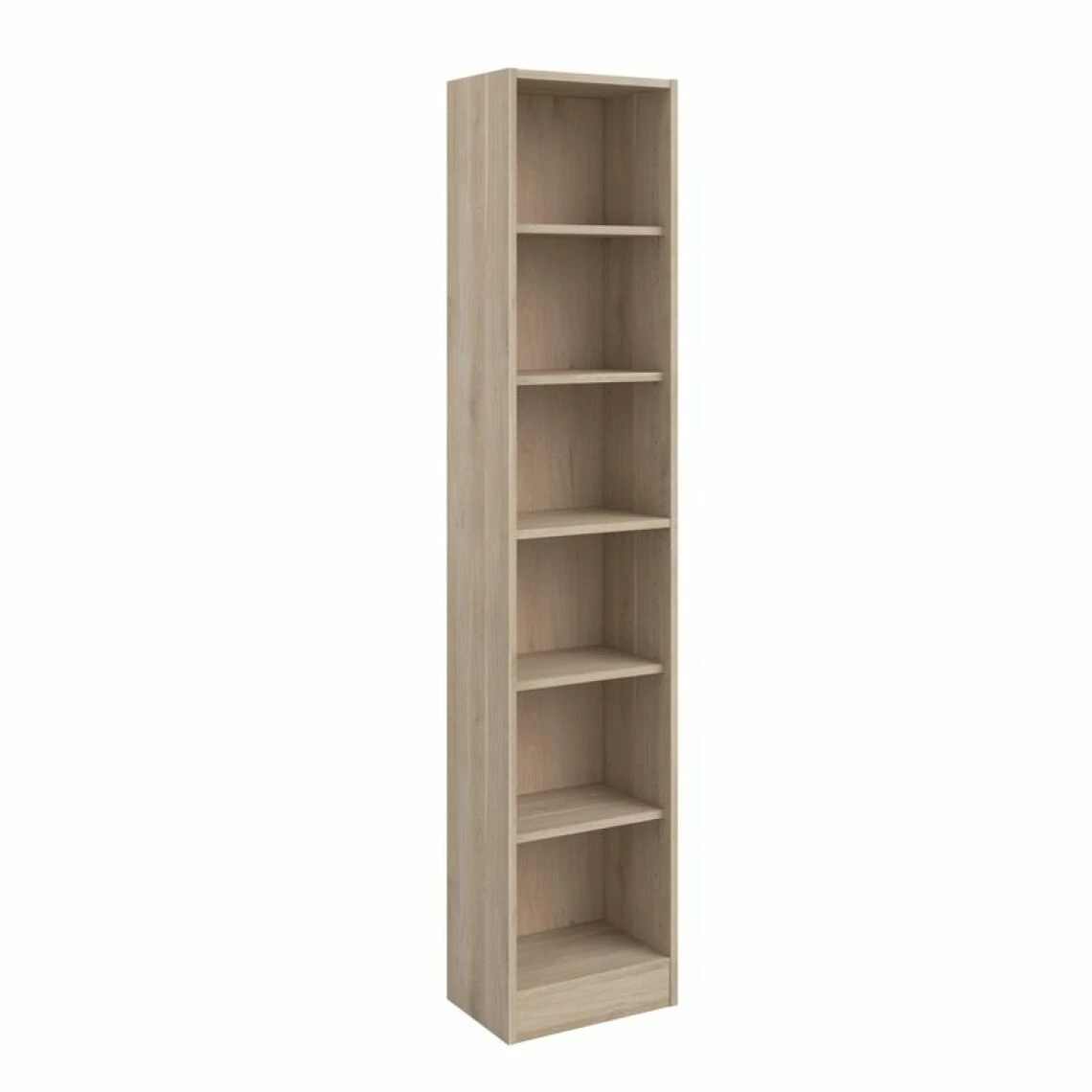Structure :panneaux de particules et panneaux de fibres de moyenne densité. . Tablettes :5 dont 4 amovibles. . Finition : papier décor imitation chêne clair. . Dimensions en cm :L. 41,3 – H. 198,5 – P. 27,9 cm. . Dispo pcs detachees donnee fournisseur :NC . A monter soi-meme. .