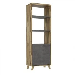 Pieds :bois massif. . Chants :ABS. . Finition :papier décor imitation chêne et béton. . Garantie :2 ans. . Poignées :métal noir. . Structure :panneaux de particules. . A monter soi-même. . Dimensions en cm :L. 64,8 – H. 190,9 – P. 41,5. . Dispo pcs détachées donnée fournisseur :2 ans. .