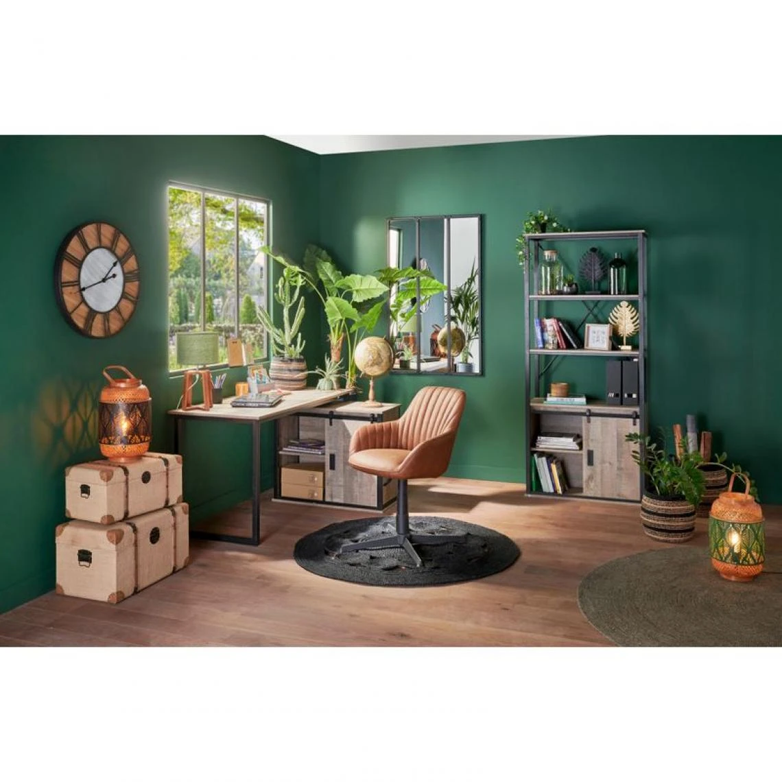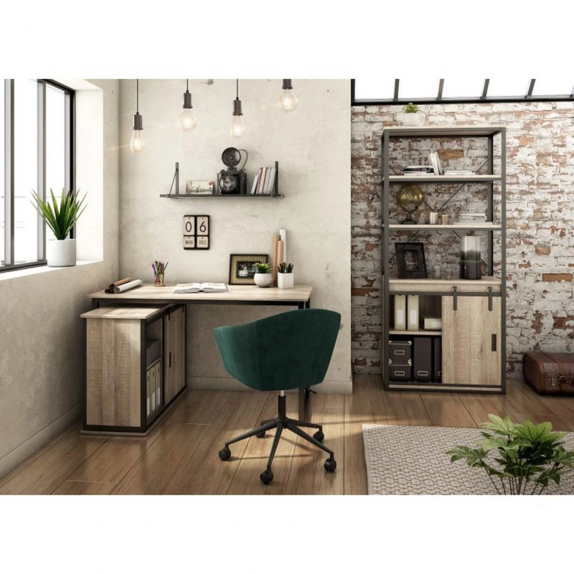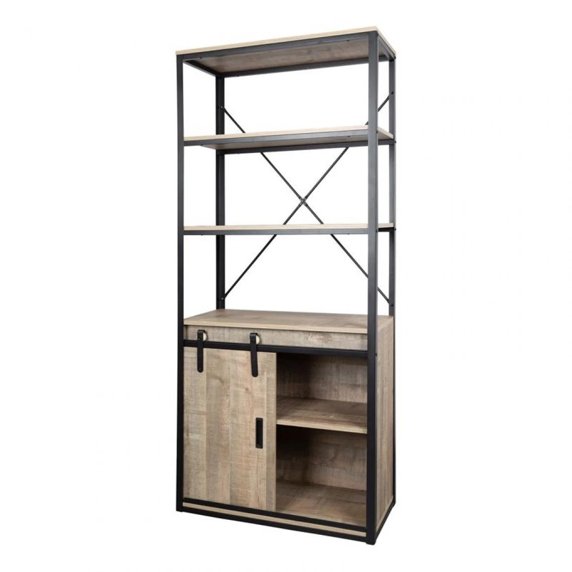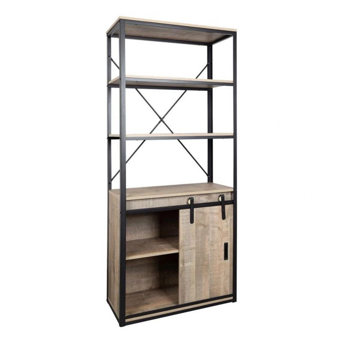 Porte coulissante et grande capacité de rangement.. Donnez un esprit industriel à votre bureau avec la bibliothèque Nevada.. vous pouvez l’ associer au bureau Nevada 2..