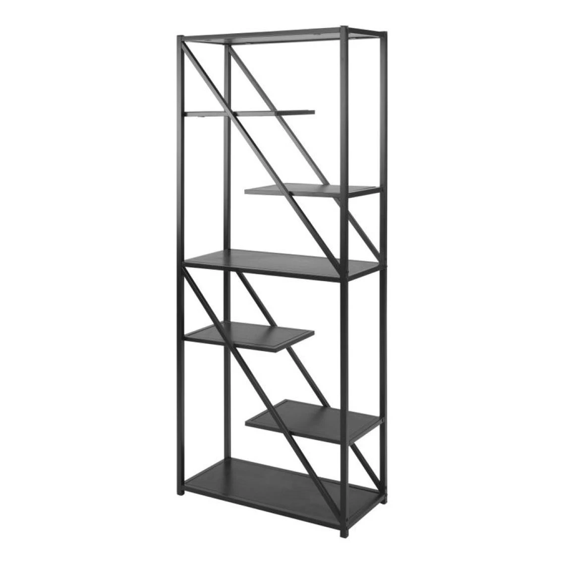 Finition :mélaminé noir. . Garantie :2 ans, pièces. . Structure :acier recouvert époxy noir. . Tablettes :panneaux de fibres de moyenne densité. . A monter soi-même. . Dimensions en cm :L. 64 – H. 165,5 – P. 30. 3 Etagères : L.60 – P.26, 4 Etagères : L.34 – P.22,6 cm. . Poids max supporté:10 kg par niveau. . Dispo pcs détachées donnée fournisseur :NC. .