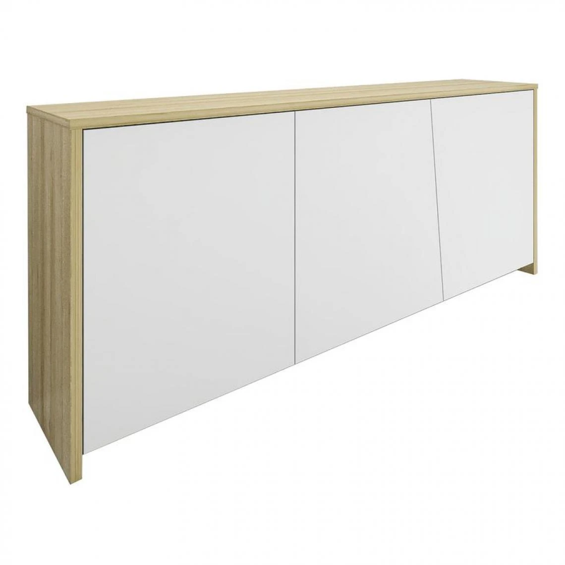 Craquez pour la fraîcheur et la modernité de la gamme ESSENTIAL. Ce buffet 3 portes imitation chêne et blanc apportera une touche de luminosité dans votre pièce. Très élégant, il peut être idéalement coordonné aux autres meubles de la collection comme la table basse pour composer un intérieur harmonieux.
