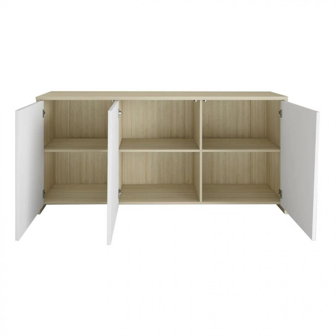 Points forts But Buffet 3 portes ESSENTIAL Imitation chêne et blanc