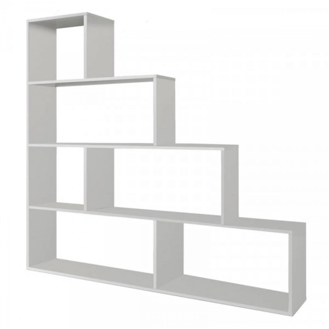 Bibliothèque 4 niveaux avec 6 cases de rangements Blanc idéal pour séparation d’ambiances