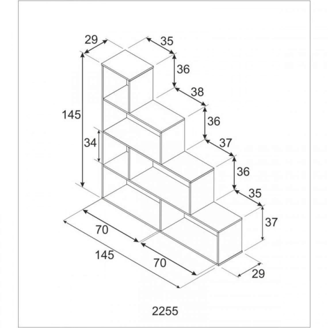 Points forts Dansmamaison Bibliothèque escalier 4 niveaux 6 niches Blanc – GIO – L 145 x l 29 x H 145 cm