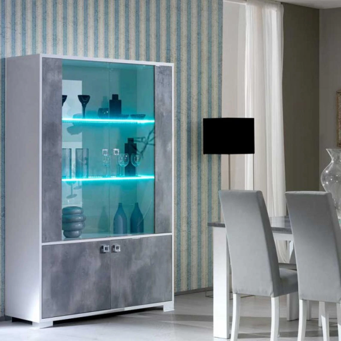 Vitrine éclairée contemporaine laqué blanc brillant et gris