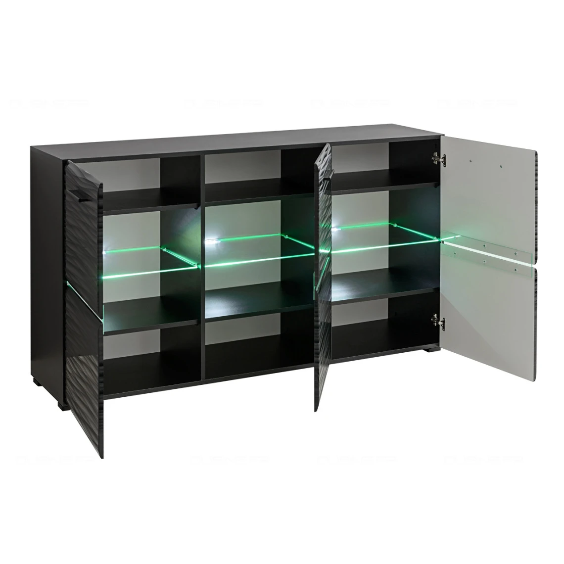 Points forts Dusine Buffet Bahut Ninja Neuf Effet 3D illuminé par LEDS Commode Noir
