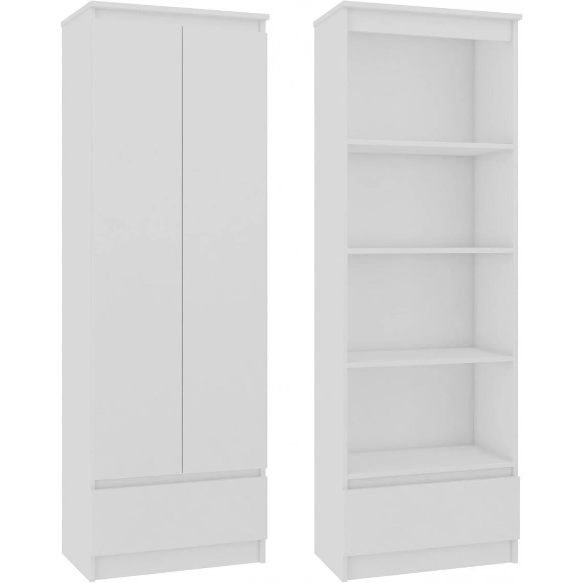 Points forts Hucoco ALTO | Meuble de rangement multi-fonctionnel 180x60x35 cm | Bibliothèque moderne salon/séjour/bureau 1 tiroir + 2 portes – Blanc