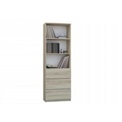 Dans votre bureau pour un espace de travail parfaitement rangé ou dans votre salon pour exposer votre belle collection de livres, la bibliothèque CAMELLA donne une véritable touche déco à chaque pièce et offre un bel espace de rangement. Cette grande bibliothèque vous permettra de ranger livres, documents et autres objets avec simplicité; POINTS FORTS: Design moderne; 3 tiroirs; 2 tablettes/3 niches de rangement; Fonctionnelle et élégante; Finition: aspect bois; Fabriquée en Europe; CARACTÉRISTIQUES TECHNIQUES: Hauteur : 180 cm; Profondeur : 33 cm; Largeur : 60 cm; Corps et faces – panneau stratifié; Bordures – finition en PVC ; Meuble à monter soi-même à l’aide de la notice fournie