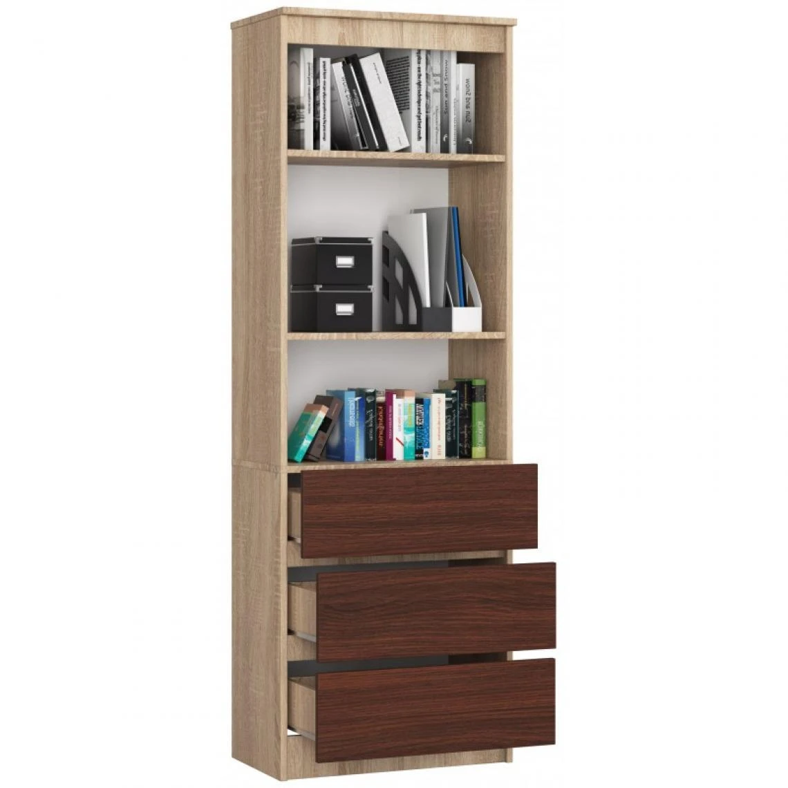 Ce meuble est très impressionnant et peut être utilisé pour meubler un bureau, un salon, un bureau à domicile ou une chambre de jeunes. Il comporte deux étagères spacieuses et hautes dans la partie supérieure et trois tiroirs spacieux et faciles à sortir dans la partie inférieure. Le produit est fait en panneau stratifié résistant aux dommages, tandis que les bords sont finis avec un placage ABS durable et esthétique Le corps est de couleur sonoma, les façades sont de couleur wengé., POINTS FORTS: Style moderne, 3 tiroirs, Design élégant et pratique, Faces sans poignée, Résistance élevée aux rayures, CARACTÉRISTIQUES TECHNIQUES: Hauteur : 180cm, Largeur : 60cm, Profondeur : 35 cm, Matériau : panneau laminé, À monter soi-même, Photos des articles le plus fidèle possible, mais restant non contractuelles, les nuances de couleur et le rendu des matières présentés à l’écran pouvant être différents de la réalité
