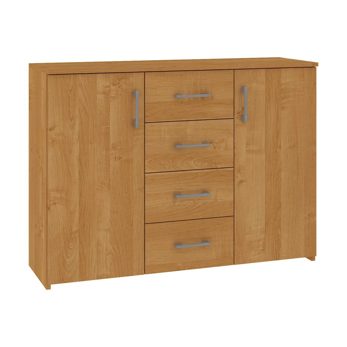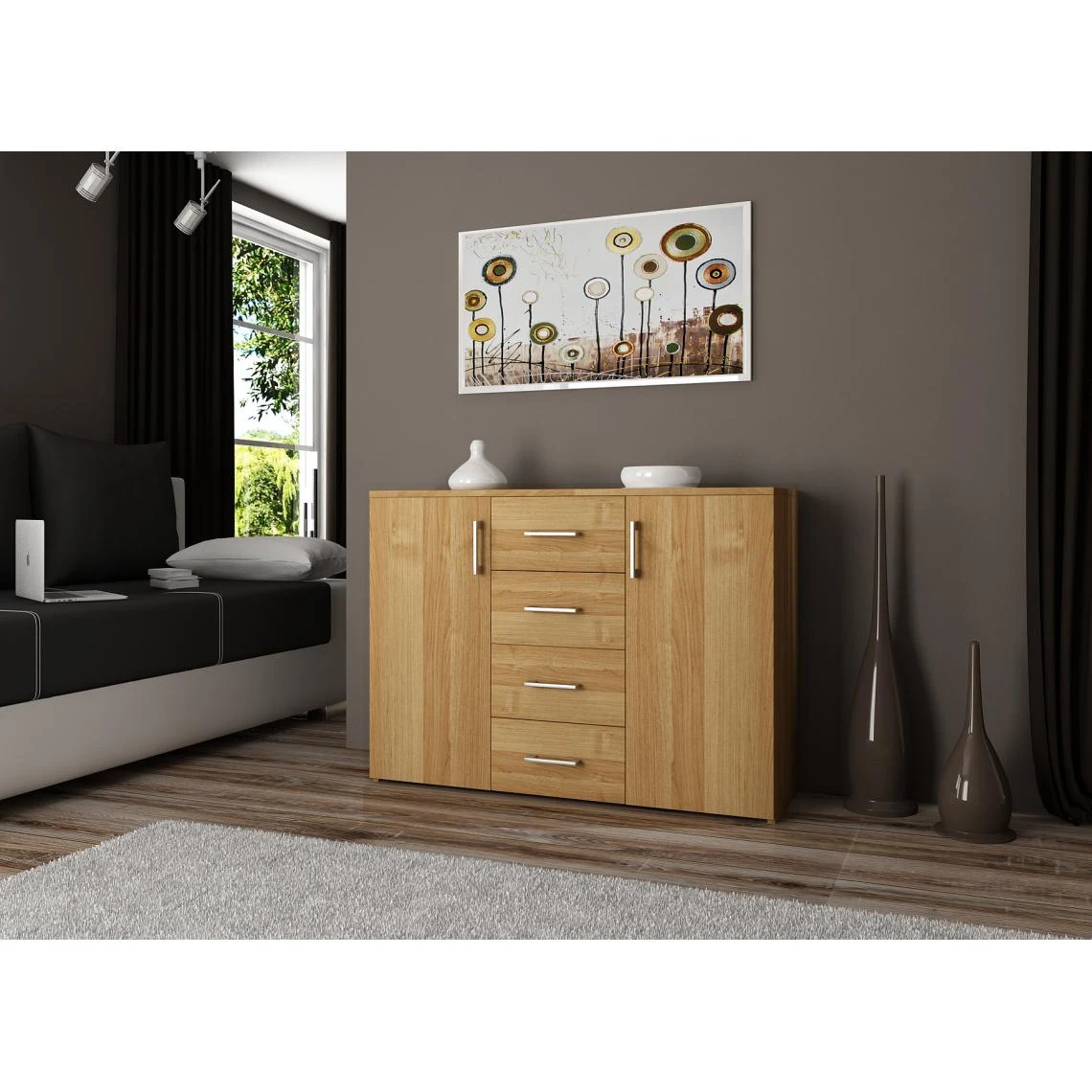 Pratique et plein d’élégance le buffet ELTON offre un grand volume de rangement en enfilade et une finition soignée et détaillée. Cette enfilade saura s’intégrer parfaitement dans chaque intérieur. Sa structure est fabriquée en panneaux de particules mélaminés de première qualité., POINT FORTS: 4 tiroirs, Grandes niches de rangement, Robuste, résistant et très stable, Solution parfaite pour l’économie et l’optimisation de l’espace, Poignées décoratives, CARACTÉRISTIQUES TECHNIQUES: Dimensions: 110x80x35 cm, Poids: 47 kg, Structure en panneaux bois 16mm, Chants ABS – Résistance aux rayures et à l’abrasion, Meuble à monter soi-même à l’aide de la notice fournie