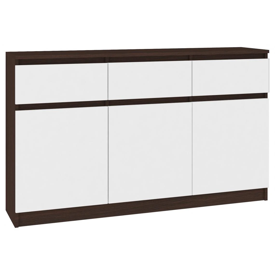 Points forts Hucoco GRACE | Buffet Enfilade moderne salon séjour 3 tiroirs + 3 portes | 138x99x40 cm | Commode contemporaine | Meuble de rangement – Wenge/Blanc