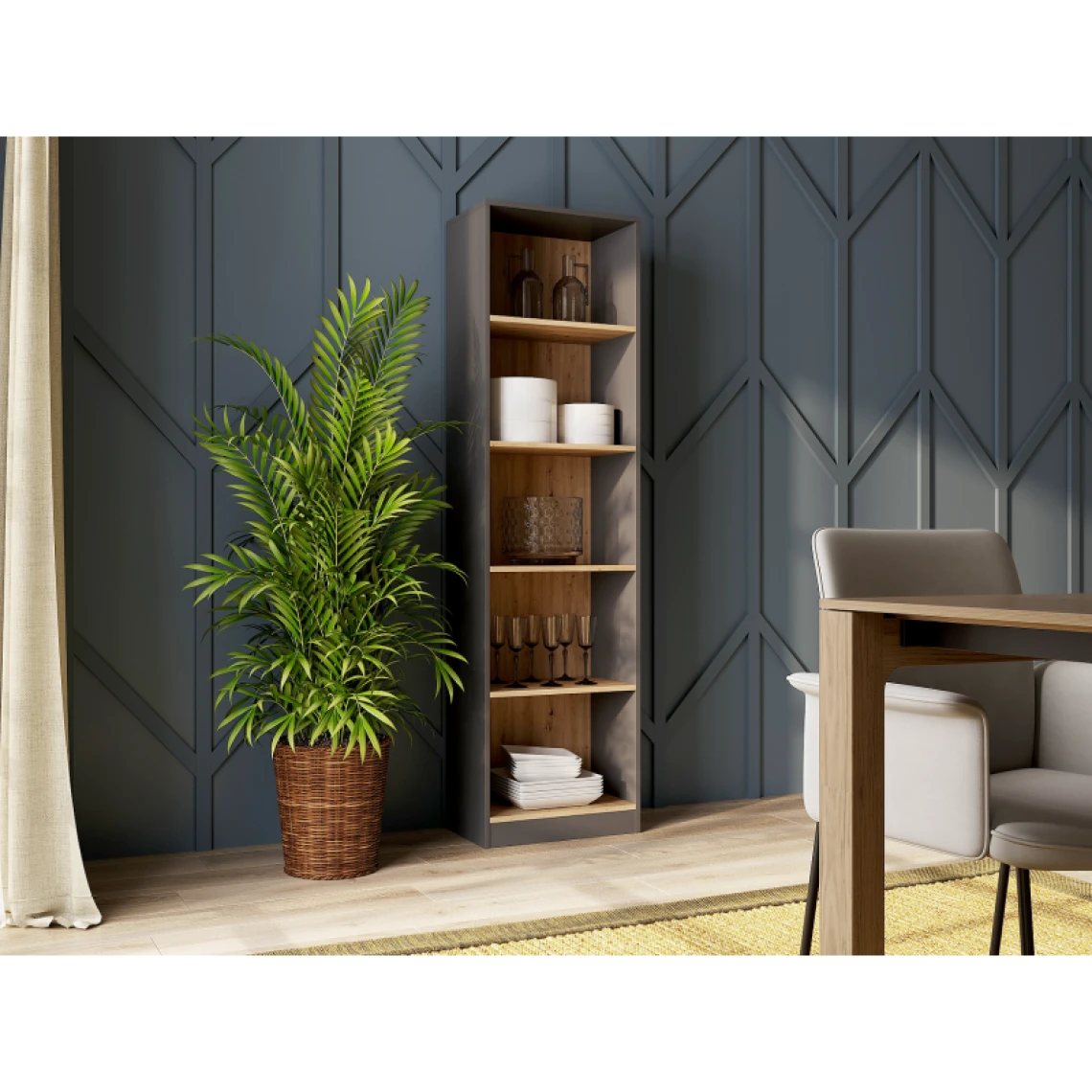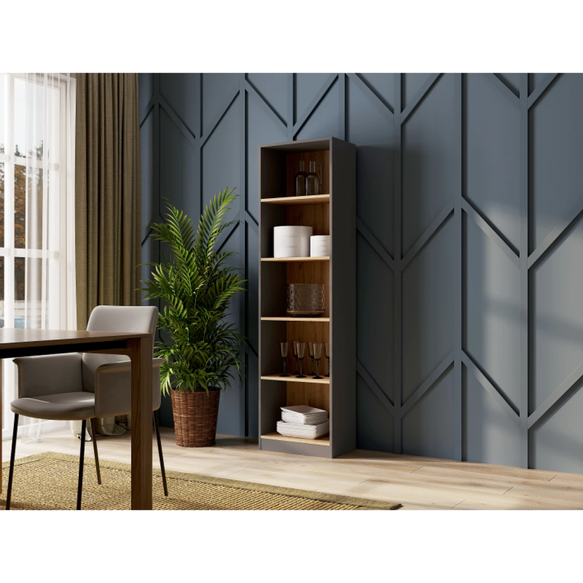 Dans votre bureau pour un espace de travail parfaitement rangé ou dans votre salon pour exposer votre belle collection de livres, la bibliothèque FLORENCE donne une véritable touche déco à chaque pièce. Cette grande bibliothèque vous permettra de ranger des livres, documents et d’autres objet dans votre intérieur avec simplicité. Elle est robuste grâce à sa structure en panneaux de fibres de bois et se caractérise par une grande durabilité, POINTS FORTS: 5 compartiments spacieux, Meuble multifonctionnel, Style moderne et épuré, Grande capacité de rangement , Finition: gris mat + aspect bois, Fabriquée en Europe, CARACTÉRISTIQUES TECHNIQUES: Largeur : 50cm, Profondeur: 30 cm, Hauteur: 181,5 cm, Structure panneaux de particules mélaminés , À monter soi-même, Photos des articles les plus fidèles possible, mais restant non contractuelles, les nuances de couleur et le rendu des matières présentés à l’écran pouvant être différents de la réalité.