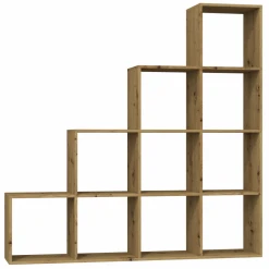 Points forts Hucoco SALERNO | Étagère casier bibliothèque moderne 153x153x30 | Séparateur de pièce | Meuble gain de place | 10 casiers de rangement – Chêne
