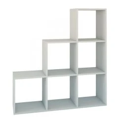 Points forts Hucoco SALERNO | Etagère escalier contemporaine 6 niches/casiers/cubes 30x115x115 cm | Bibliothèque moderne | Meuble de rangement – Blanc