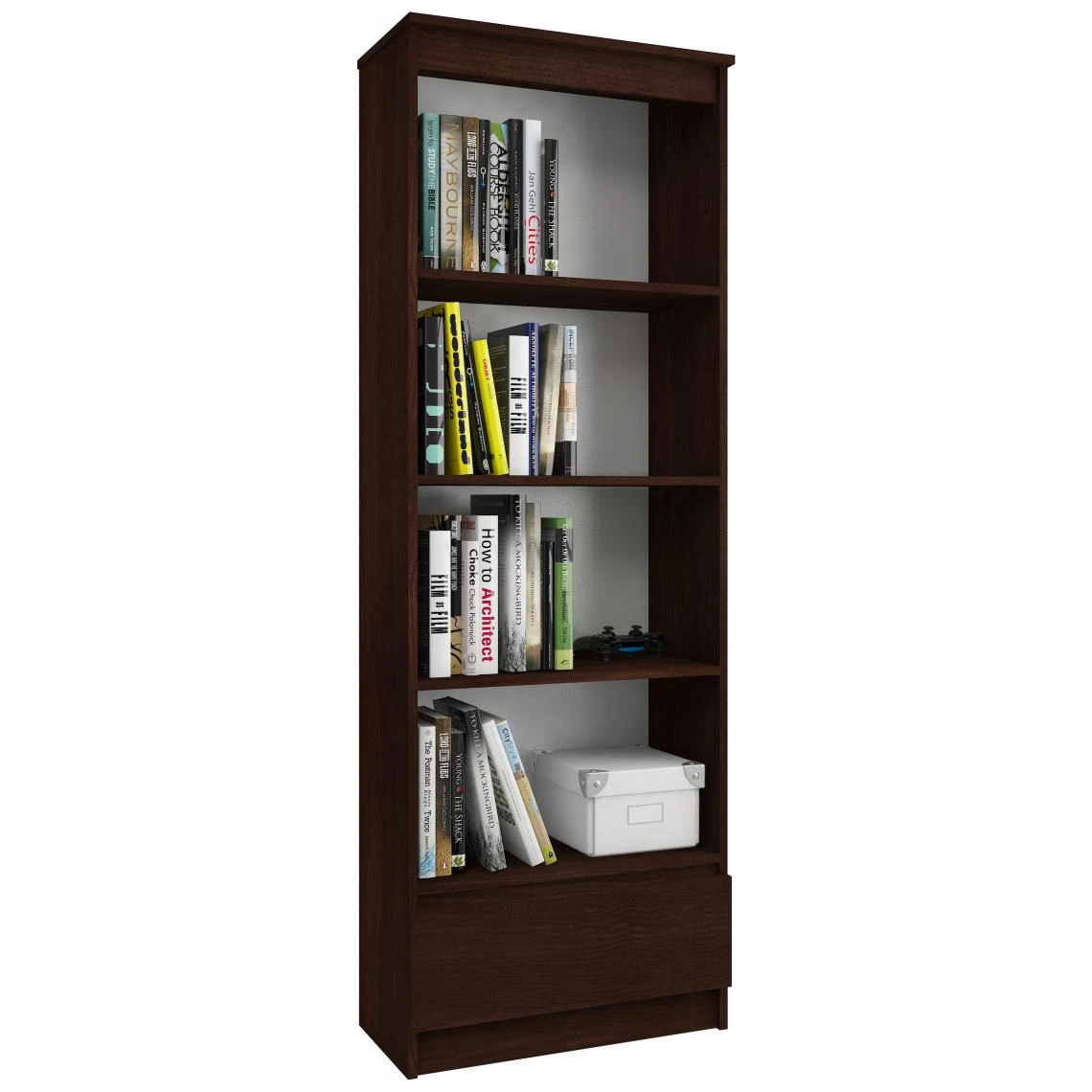 Points forts Hucoco WILMA | Bibliothèque moderne salon/séjour/bureau 180x60x35cm | 4 niches + 1 tiroir | Meuble de rangement livres/déco/documents – Wenge