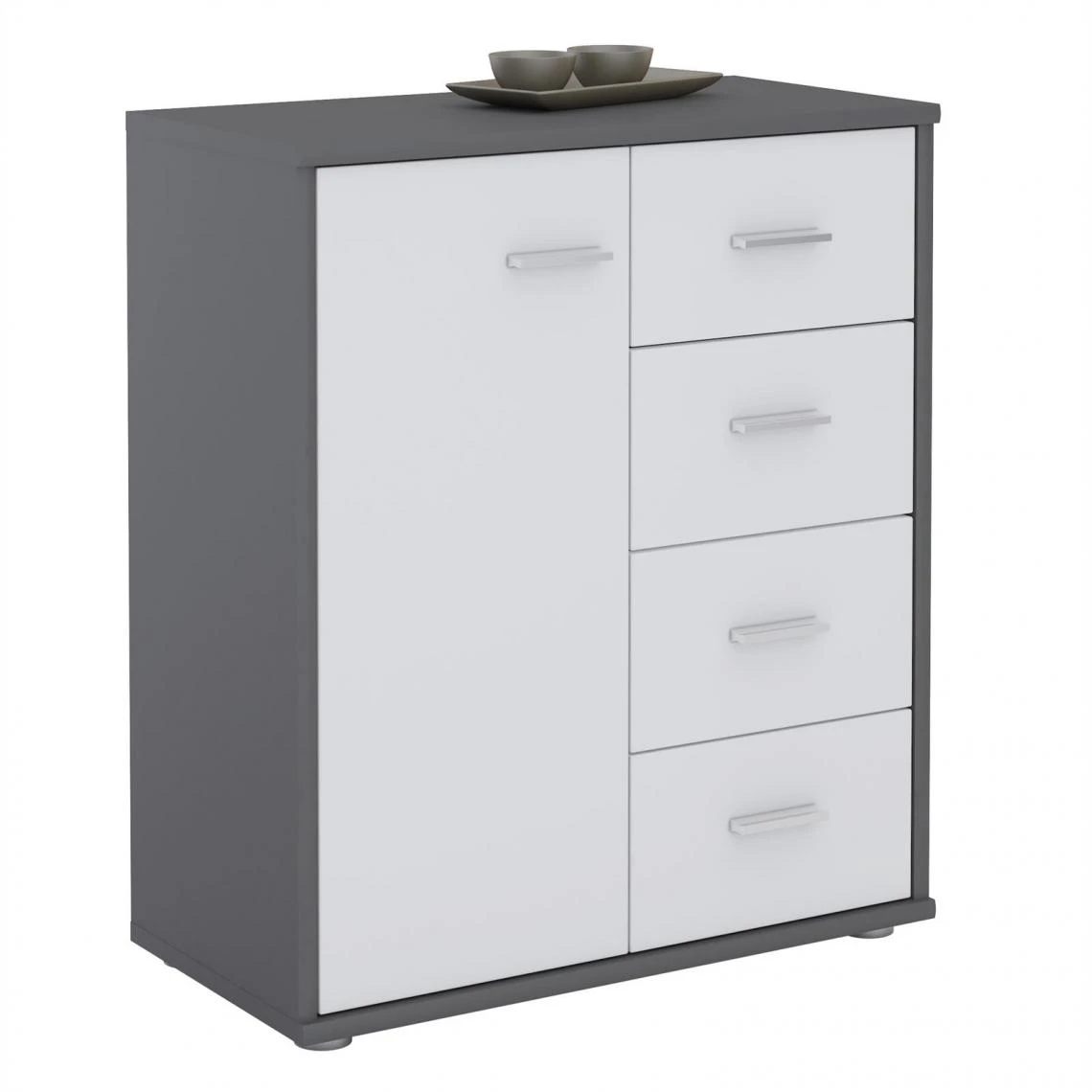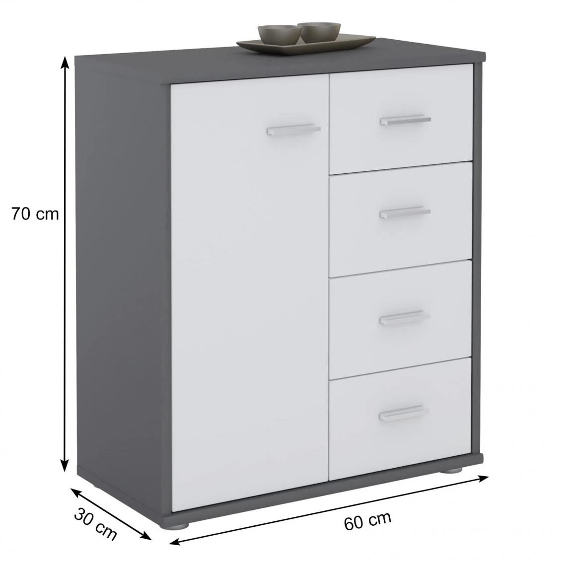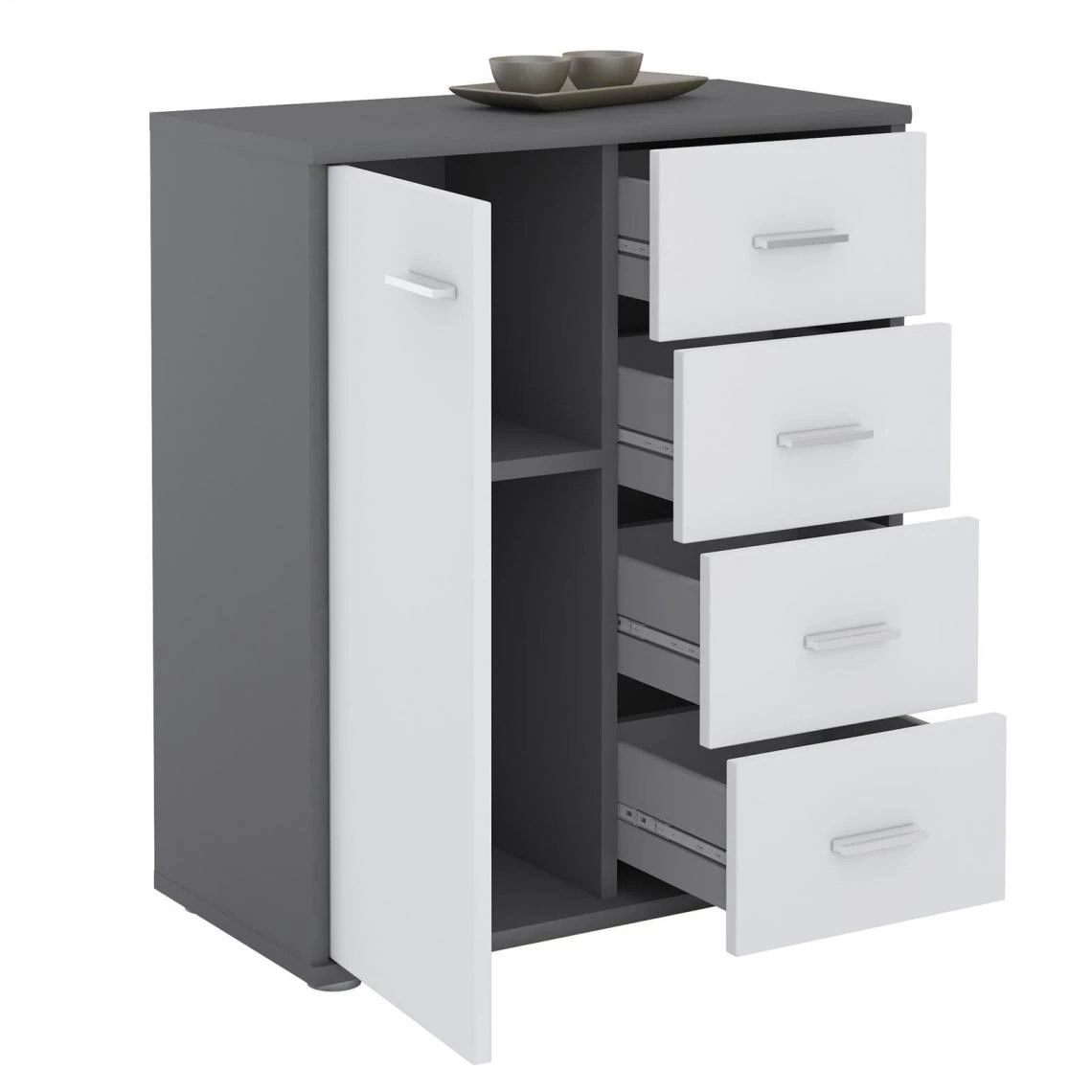 Points forts Idimex Buffet OSCAR, en mélaminé gris et blanc mat