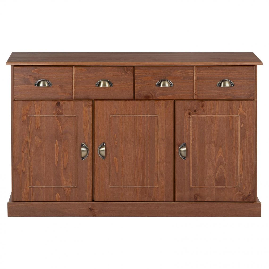 – Le buffet est fabriqué en pin massif, lasuré brun foncé.