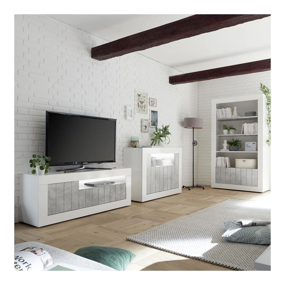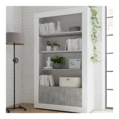 Points forts Kasalinea Bibliothèque moderne blanc et gris effet béton MABEL 5