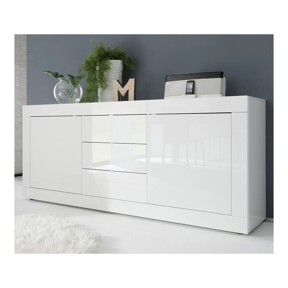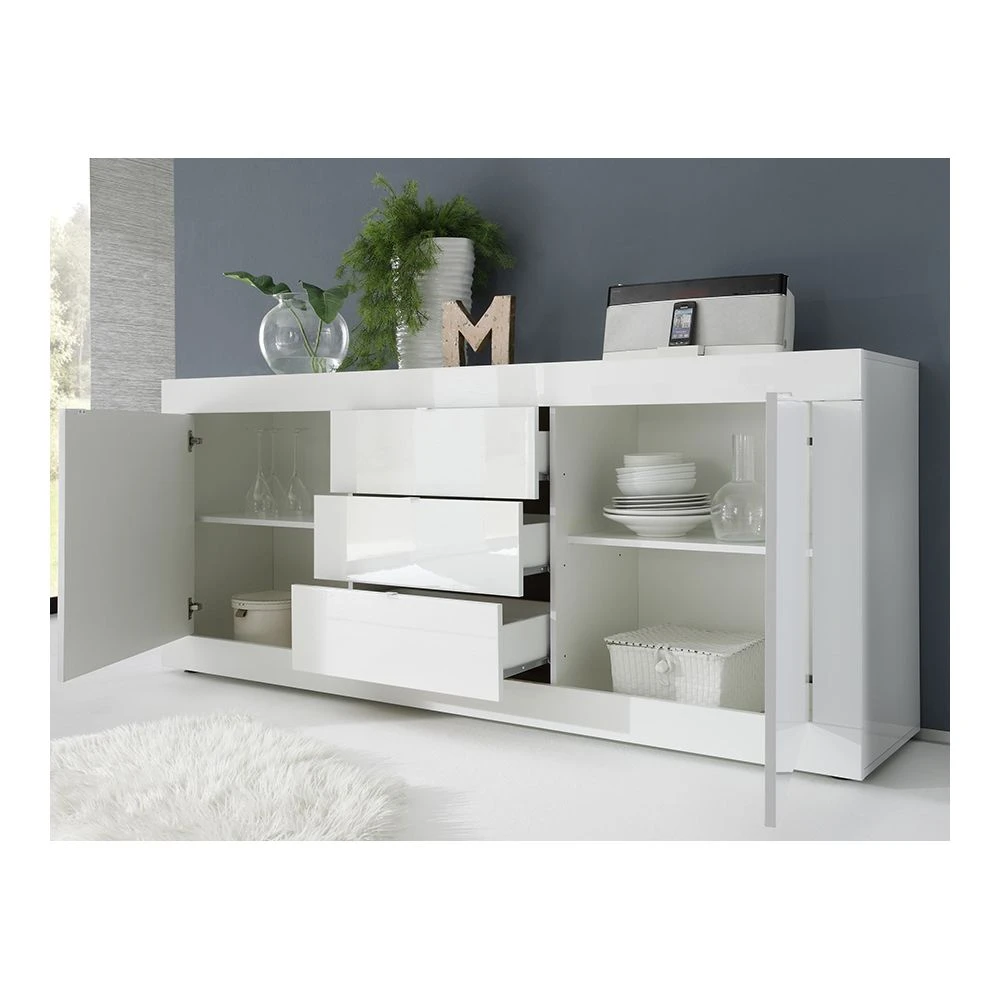 Points forts Kasalinea Buffet bahut blanc brillant laqué 2 portes 3 tiroirs design ARIEL