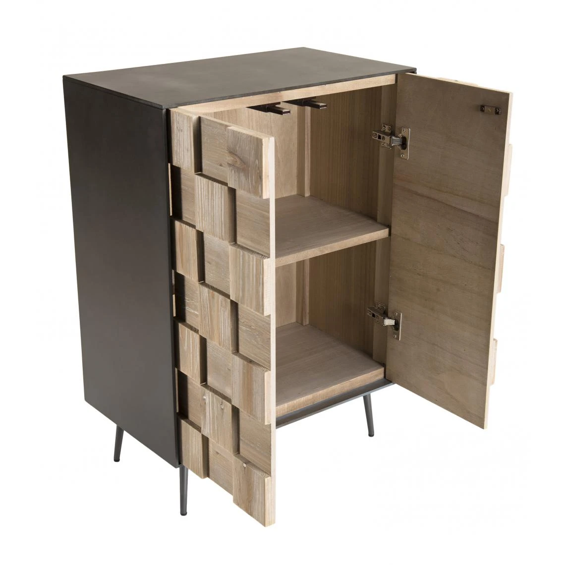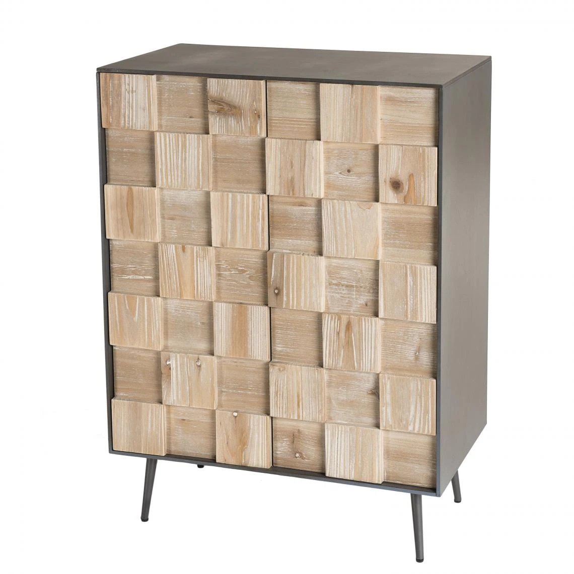 Laissez-vous séduire par ce Buffet 2 portes Sapin et pieds métal CARLA. Il s’adapte à vos besoins et à tous les styles de déco. Réalisé en bois de sapin, il apporte originalité et chaleur à la pièce. Les motifs marquetés sur la façade lui donnent un aspect moderne et élégant. Le tout repose sur des piétements en métal à la fois robustes et stables.