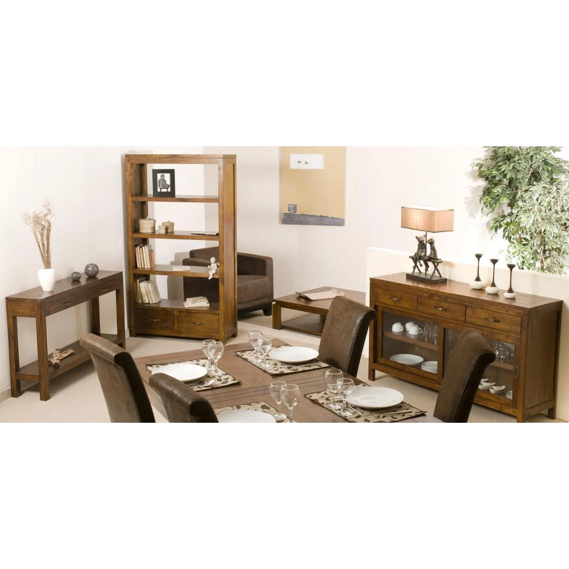 Buffet 3 tiroirs 2 portes coulissantes en bois mindi livré monté