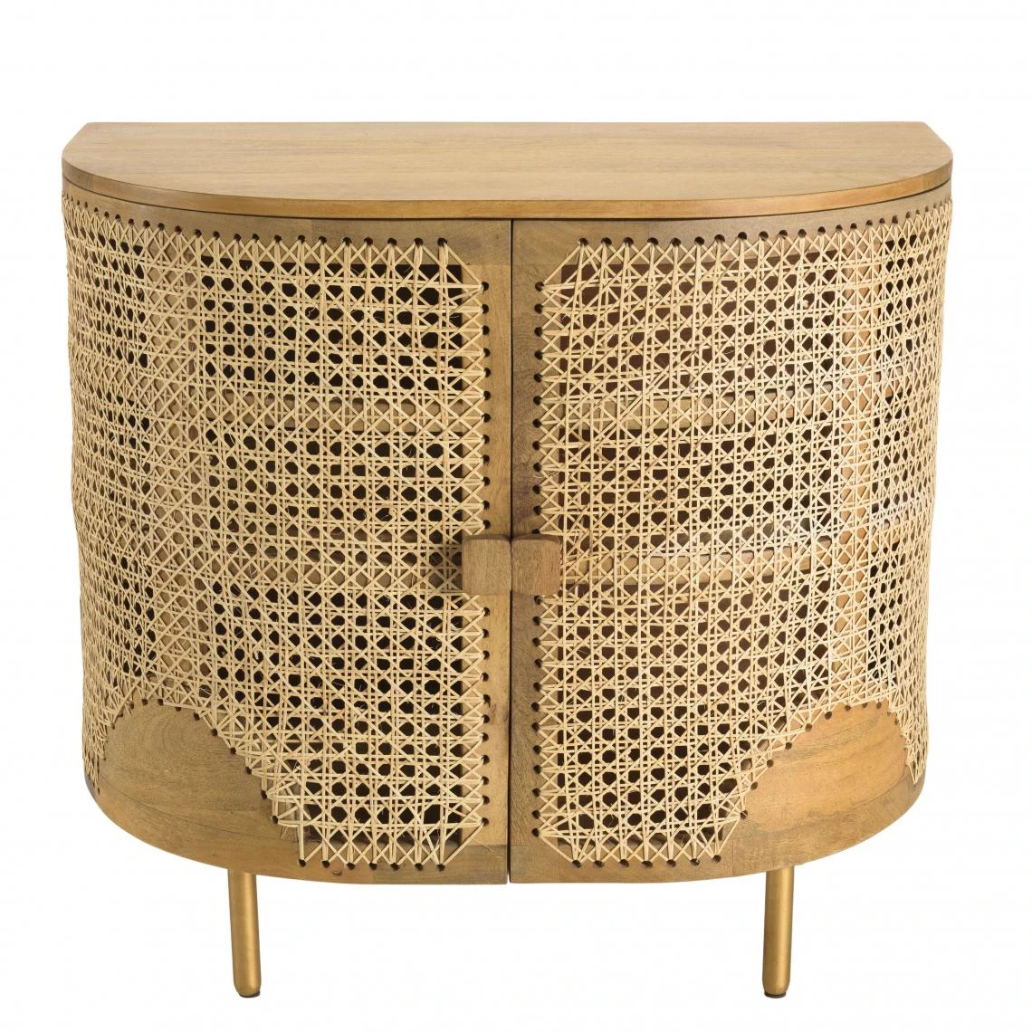 Points forts MACABANE Buffet marron 2 portes bois de manguier cannage pieds métal doré ISA